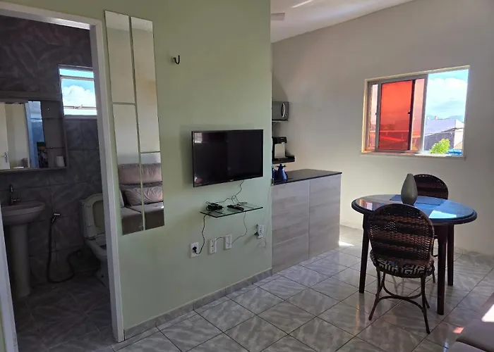 As comodidades auto-suficientes incluem kitchenette com refrigerador e utensílios de cozinha. O aeroporto de Fortaleza pode ser alcançado de carro em 10 minutos.